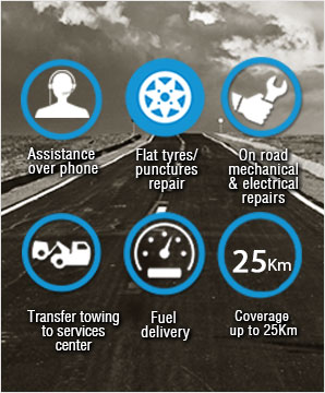 Roadside Assistance Program is part of the Honda Shield Program. It is there to help you in case of a flat tire, dead battery or engine breakdown. We’ll also provide you with fuel if your Honda runs out of it (additional charges for the same). Please contact your nearest Honda Dealership for availability of Roadside Assistance Program in your city and enrolment information.